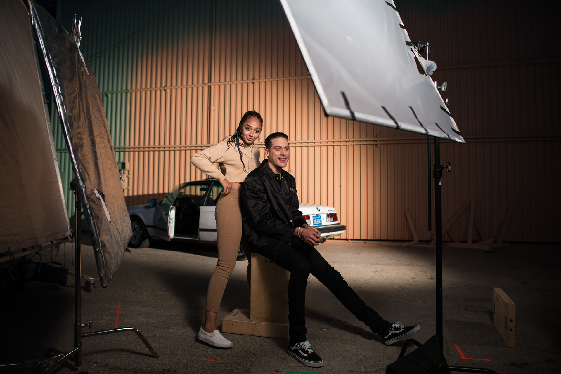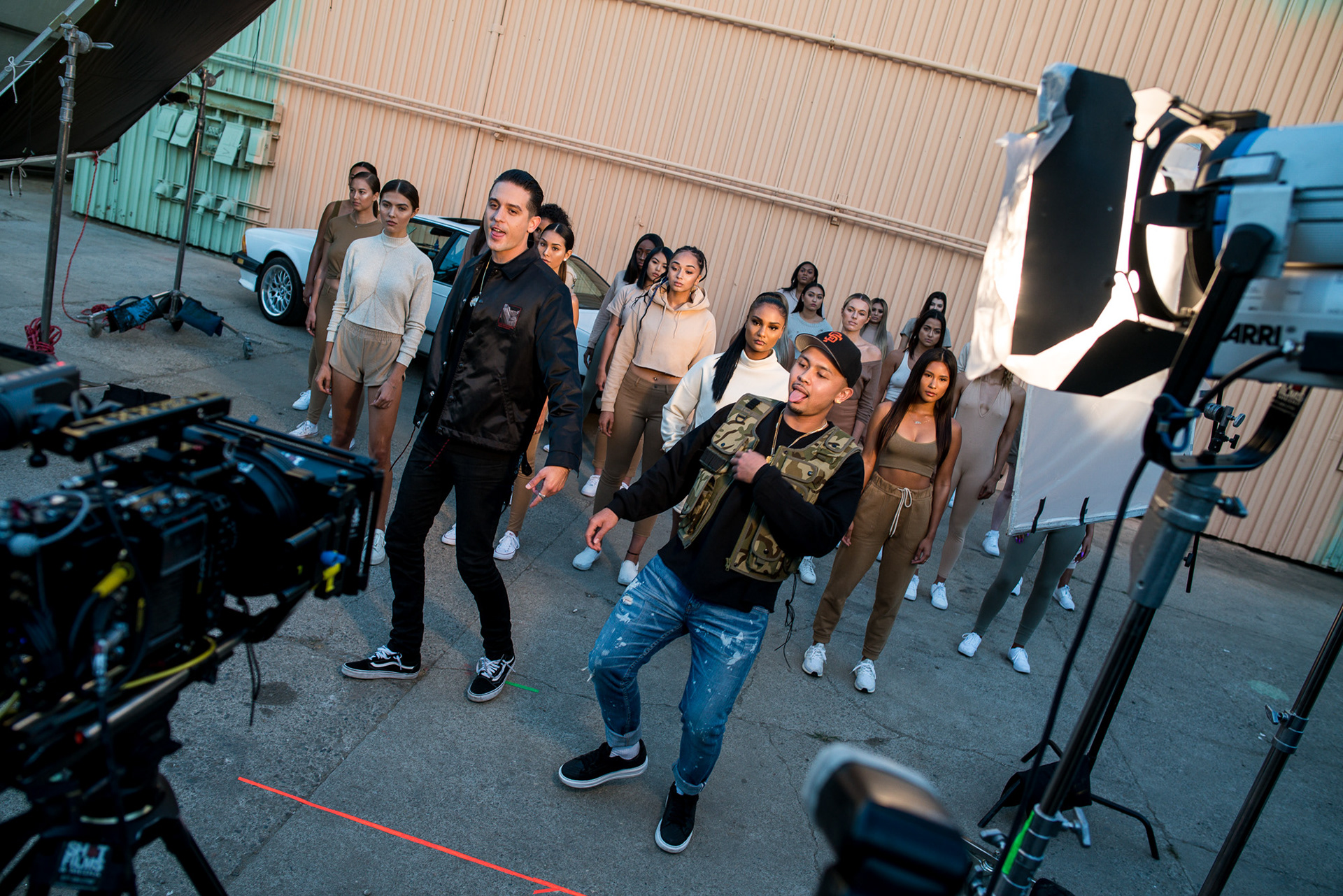 Behind the Scenes photos of the shoot for P-Lo's "Feels Good" music video featuring G-Eazy, directed by Mancy Gant and produced by Adrian Per.